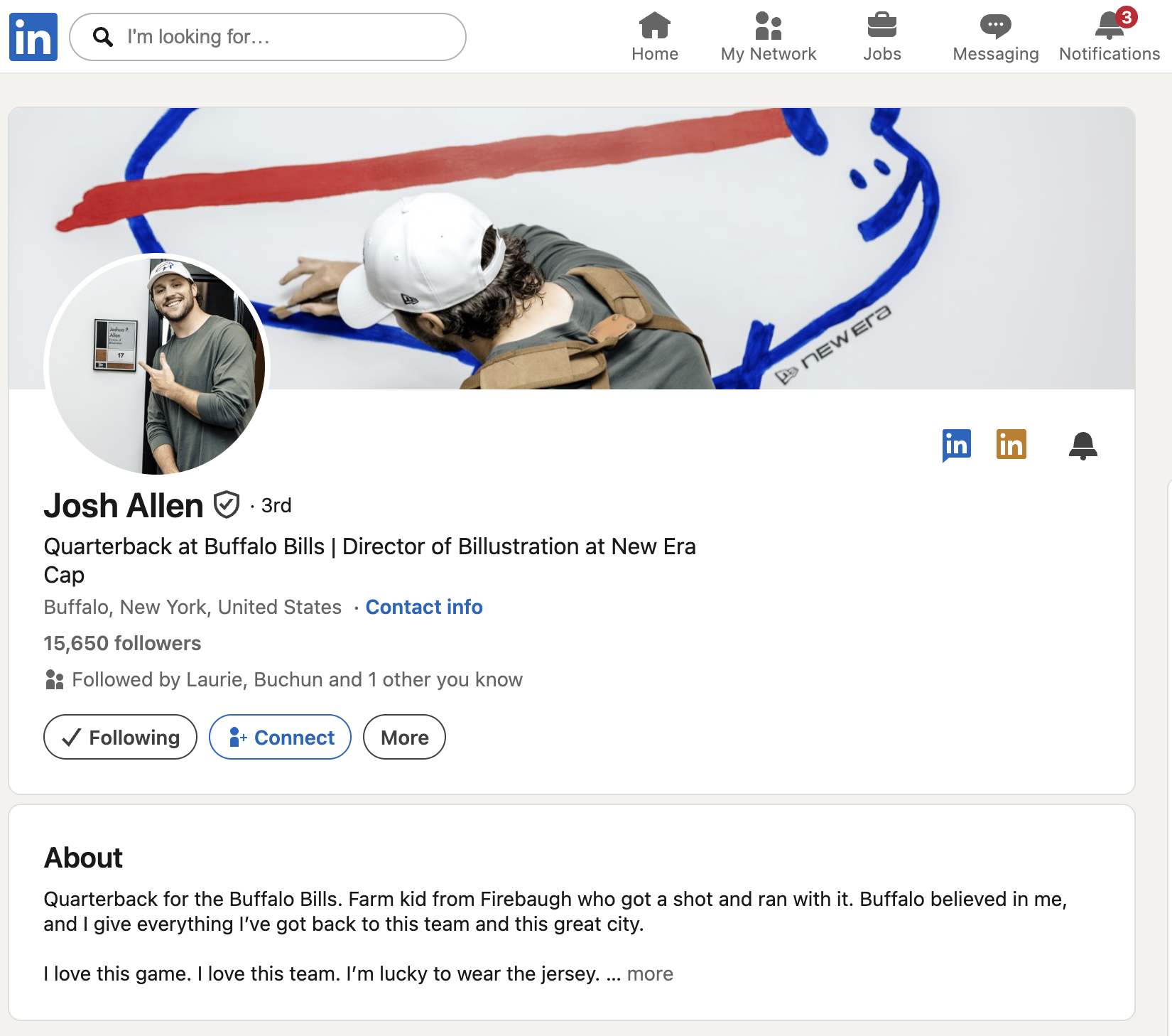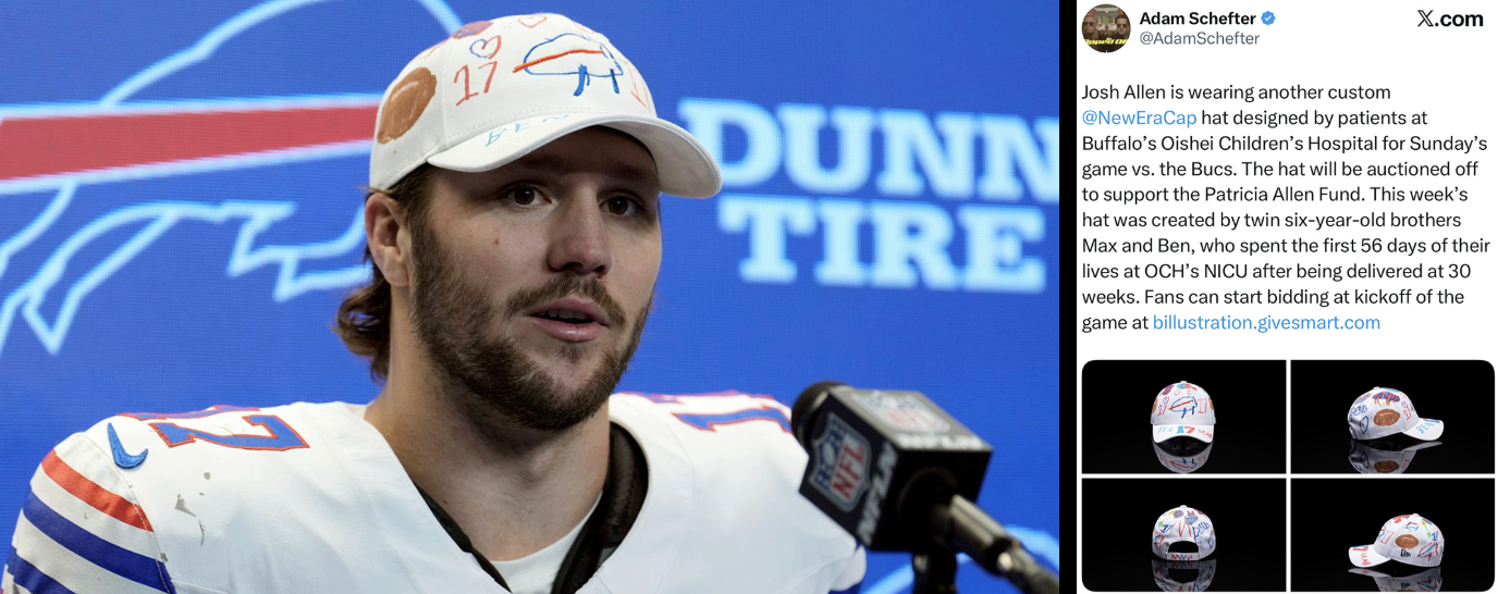When Josh Allen was drafted by the Buffalo Bills, he was asked to draw the team’s logo from memory for a rookie social video. The childlike drawing went instantly viral and has been iconic team lore ever since.